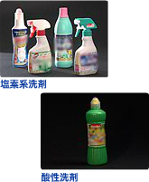 台所や洗面所などで使われるカビ取り洗剤や漂白剤の中にソーダ製品が含まれています。その中で塩素系洗剤と呼ばれるものには次亜塩素酸ソーダが、酸性洗剤と呼ばれるものには塩酸が含まれています。塩素系洗剤と酸性洗剤を混ぜると有毒な塩素ガスを発生しますので取り扱いには注意しましょう。